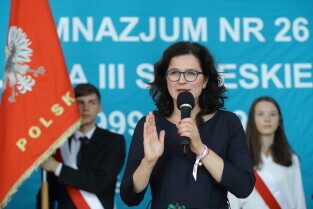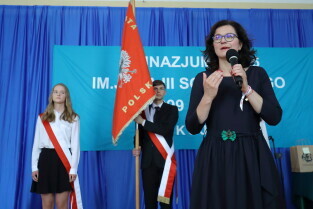 Gdańsk, Gimnazjum nr 26. Zakończenie roku szkolnego z udziałem Prezydent Gdańska Aleksandry Dulkiewicz. Nz. Prezydent Gdańska Aleksandra Dulkiewicz.