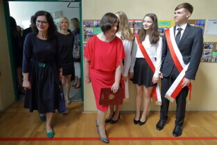Gdańsk, Gimnazjum nr 26. Zakończenie roku szkolnego z udziałem Prezydent Gdańska Aleksandry Dulkiewicz. Nz. Prezydent Gdańska Aleksandra Dulkiewicz, Wiceprzewodnicząca Rady Miasta Gdańska Teresa Wasilewska i Wiceprezydent Piotr Kowalczuk.