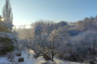 Gdańsk. Piękna zimowa sceneria po intensywnych opadach śniegu.