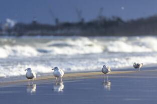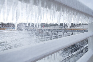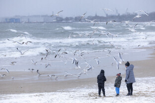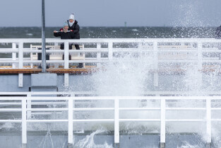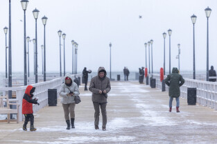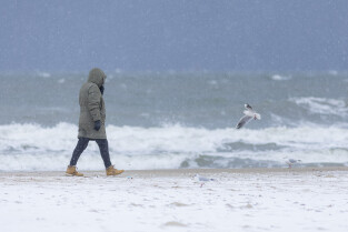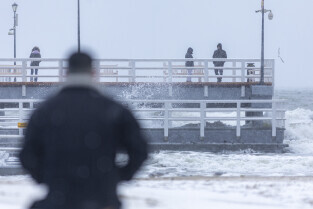 Zimowe zdjęcia molo w Brzeźnie i pobliskiej plaży. Niska temperatura i silny wiatr nie zniechęcił spacerowiczów do wizyty nad morzem.