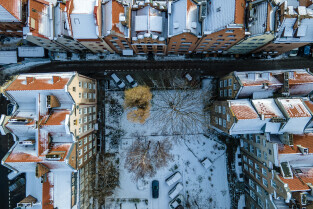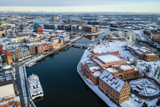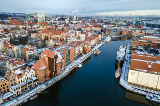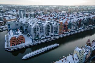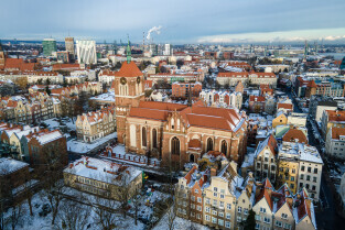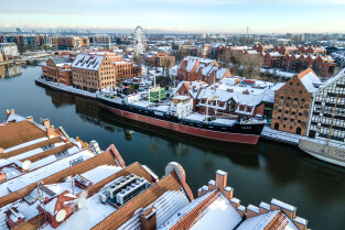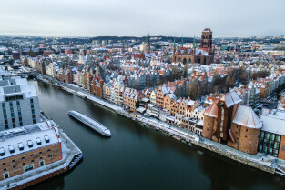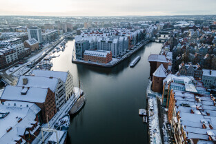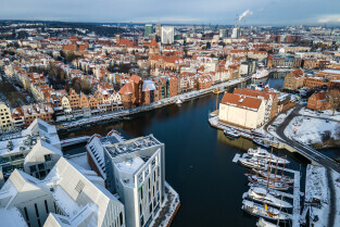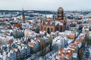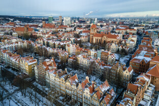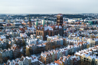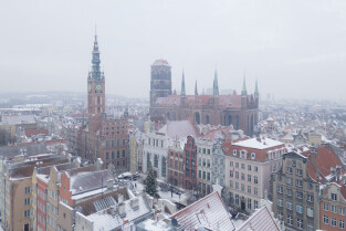 Jak oblane lukrem domki z piernika, tak dziś wyglądają kamieniczki Głównego Miasta z lotu ptaka. Na zdjęciach naszego fotoreportera Piotra Wittmana, widać bajkowe krajobrazy: XV-wieczny Żuraw, rudowęglowiec SS Sołdek, gęsta od chłodu Motława i koronkowa zieleń parku Oliwskiego - wszystko posypane grubą warstwą śniegu.