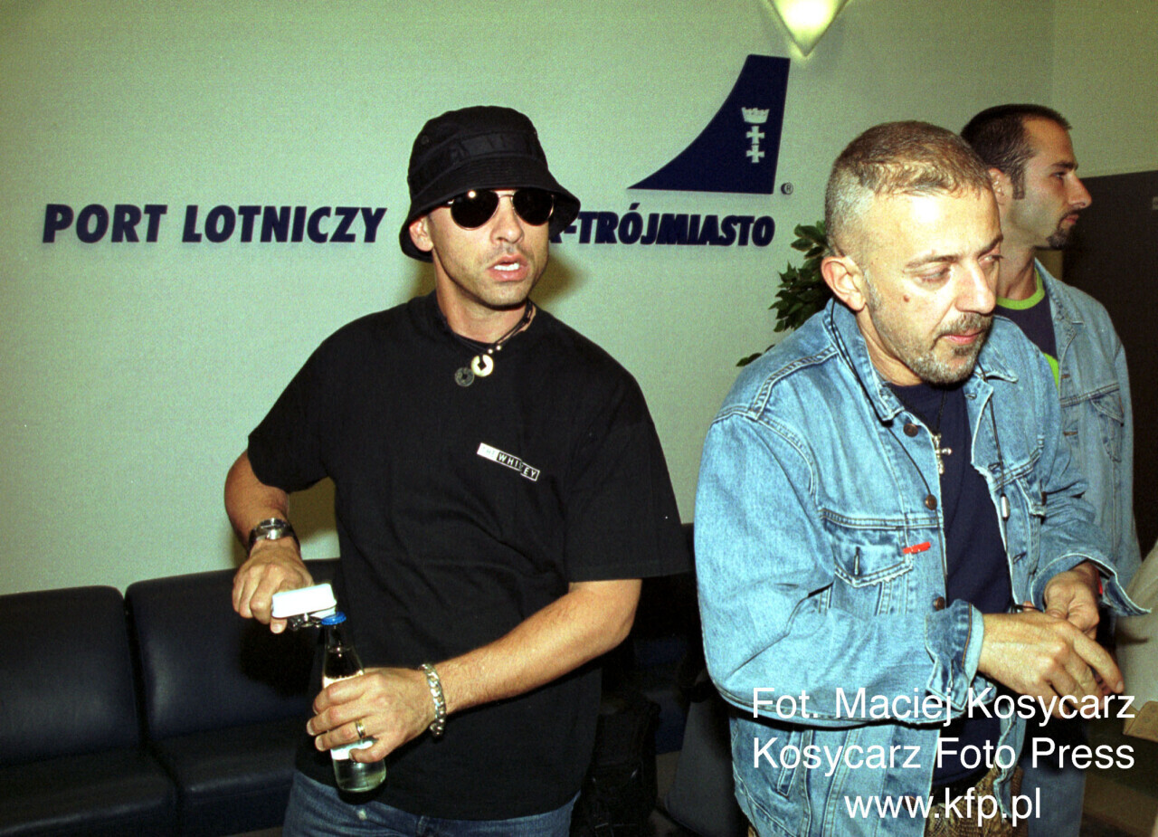 Eros Ramazzotti na lotnisku w Gdańsku - Rębiechowie, przed wieczornym koncertem w Sopocie. 22.07.2001