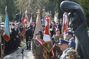 Gdańsk, Cmentarz Łostowicki, pomnik Golgoty Wschodu. Dzień Pamięci Ofiar Zbrodni Katyńskiej oraz 78. Rocznicy II masowej zsyłki Polaków na Sybir.