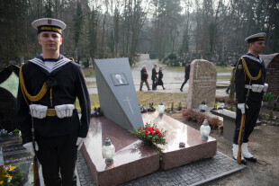 Gdańsk. Cmentarz Srebrzysko. Rocznica katastrofy lotniczej pod Smoleńskiem. Kwiaty na grobach sładali Prezydent Gdańska Paweł Adamowicz wraz z Przewodniczącym Rady Miasta Bogdanem Oleszkiem oraz Radnymi Miasta Gdańska