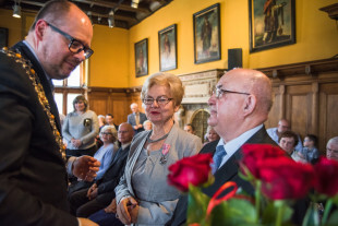Gdańsk, Ratusz Staromiejski ul. Korzenna. Jubileusz Par Małżeńskich - "Złote Gody", podczas których Prezydent Gdańska, Paweł Adamowicz wręczył medale za długoletnie pożycie małżeńskie