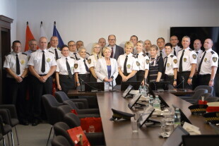 Gdańsk. Spotkanie Prezydenta Miasta Gdańska Pawła Adamowicza ze strażnikami miejskimi z okazji Dnia Straży Miejskiej – Prezydent wręczył nagrody wyróżniającym się funkcjonariuszom. Nz. Prezydent Gdańska Paweł Adamowicz i Leszek Walczak - Komendant Gdańskiej Straży Miejskiej.