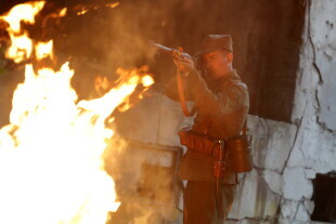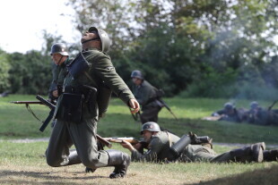 Gdańsk, Westerplatte. Pokaz rekonstrukcyjny w rejonie placówki Fort - załoga Westerplatte odpiera atak niemiecki skierowany wzdłuż plaży.