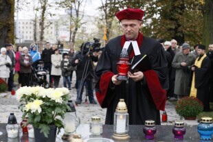 Gdańsk, Cmentarz Nieistniejących Cmentarzy przy ul. 3 Maja. Modlitwa międzywyznaniowa w dniu Wszystkich Świętych, w której udział wzięli przedstawiciele wyznań religijnych obecnych w Gdańsku