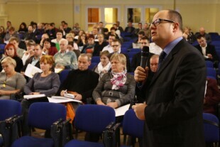 Spotkanie władz Gdańska z przedstawicielami Rad Dzielnic i Osiedli dotyczące założeń budżetu miasta na rok 2013 i zmian w systemie gospodarowania odpadami komunalnymi. Gdańsk, Centrum Kształcenia Ustawicznego.