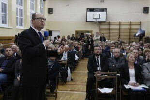 Spotkanie Prezydenta Gdańska Pawła Adamowicza z mieszkańcami osiedli Strzyża i VII Dwór z cyklu "Mój dom, moja dzielnica, moje miasto". Gdańsk, IX LO.