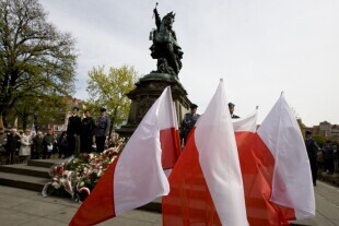 Gdańskie obchody 66. rocznicy zakończenia II Wojny światowej. Pomnik "Tym co za Polskość Gdańsk" przy ul. Podwale Staromiejskie