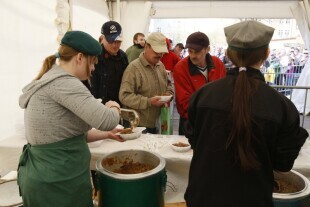 Wielkanocne śniadanie dla ubogich i bezdomnych zorganizowane przez gdańskich restauratorów. Gdańsk, Targ Węglowy