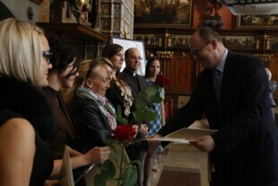 Prezydent Gdańska Paweł Adamowicz wręczył gdańskim nauczycielom akty mianowania. Gdańsk, Dwór Artusa