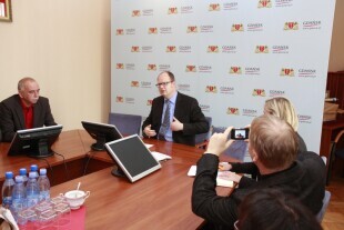 Wizyta studyjna dziennikarzy z Rosji. Spotkanie dziennikarzy z Prezydentem Gdańska Pawłem Adamowiczem w Urzędzie Miejskim w Gdańsku.