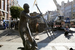 Gdańsk, Długi Targ. Na miejscu Neptuna (zdemontowanego na czas renowacji) ustawiona została figura ze styropianu z podobizną Lecha Wałęsy. Okazją do umieszczenia rzeźby są urodziny byłego Prezydenta RP oraz uroczystości przyznania nagrody jego imienia