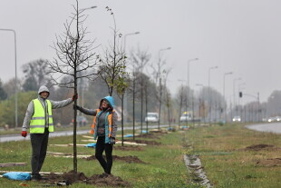 Gdańsk.Nasadzenia drzew wzdłuż Alei Macieja Płażyńskiego.