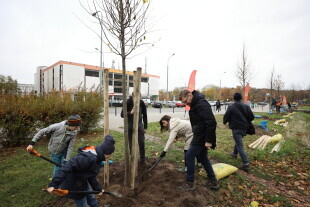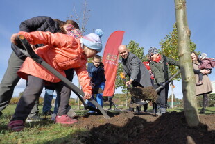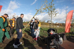 Gdańsk. Wspólne sadzenie 79 drzewek lipy drobnolistnej wzdłuż ul. Obrońców Wybrzeża na gdańskim Przymorzu.