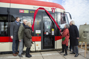 Gdańsk.Uroczystość nadania gdańskiemu tramwajowi imienia Piotra Dwojackiego.