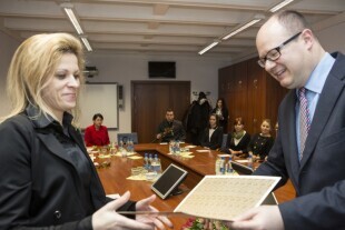 Gdańsk, Nowy Ratusz. Przewodniczący Rady Miasta Gdańska Bogdan Oleszek i Wojciech Głuszczak, prezes Zarządu Zakładu Utylizacyjnego Sp z o.o., wręczyli dziś nagrody laureatom Sylwestrowego Konkursu Butelkowego.