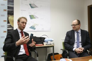 Urząd Miejski w Gdańsku. Spotkanie prezydenta Gdańska Pawła Adamowicza z delegacją z Holandii poświęcone projektowi dotyczącemu bezpieczeństwa wodnego w naszym mieście.