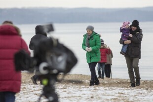 Plan zdjęciowy serialu "Prawo Agaty" emitowanego w telewizji TVN. Gdańsk, plaża Brzeźno