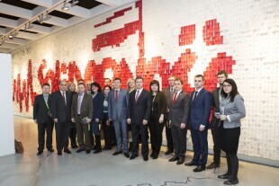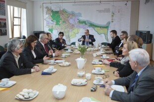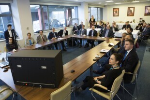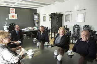 Spotkanie delegacji radnych z ukraińskiego miasta Mariupol z Prezydentem Gdańska Pawłem Adamowiczem. Gdańsk, Europejskie Centrum Solidarności