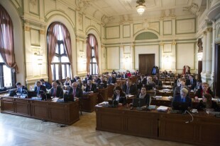 Sesja Rady Miasta Gdańska w Nowym Ratuszu. Nz. Przewodniczący Rady Miasta Gdańska Bogdan Oleszek i Wiceprzewodniczący Wojciech Błaszkowski