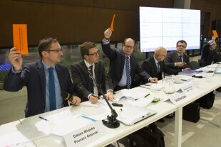 Jury konkursu "(Długo)trwale Zakochani" z udziałem Z-cy Prezydenta Gdańska Piotra Kowalczuka. Gdańsk, Urząd Miejski