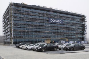 Uroczystość zawieszenia wiechy na budynku biurowca KOGA. Gdańsk, tereny Portu Gdańsk przy Trasie Sucharskiego