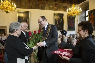 Jubileusz Par Małżeńskich - "Złote Gody", podczas których Prezydent Gdańska Paweł Adamowicz wręczył medale za długoletnie pożycie małżeńskie. Gdańsk, Ratusz Głównego Miasta