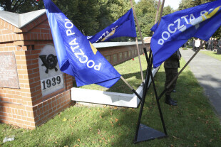 69. rocznica rozstrzelania Obrońców Poczty Polskiej w Gdańsku. Obchody na Cmentarzu na Zaspie, miejscu spoczynku Obrońców.