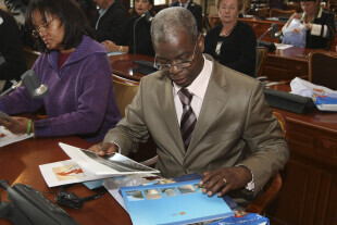Sesja Rady Miasta Gdańska w Nowym Ratuszu. Nz. Prezydium Rady.