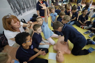Gdańsk, Szkoła Podstawowa nr 45. Wielka Orkiestra Świątecznej Pomocy podjęła próbę pobicia rekordu w pierwszej pomocy (resuscytacji krążeniowo - oddechowej).