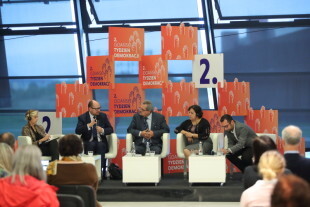 Gdańsk. Tydzień Demokracji. Demokracja w akcji - różne formy partycypacji społecznej. Aktywność obywatelska w obliczu demokracji liberalnej, nieliberalnej oraz w krajach Partnerstwa Wschodniego. Uczestnicy: Paweł Adamowicz, Antonella Valmorbida (Sekretarz Generalna ALDA), Adam Balcer (WiseEuropa), przedstawiciel CORELAP, reprezentant Białorusi i Ukrainy (Mariupol).