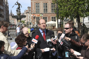 Finał X Gdańskiej Edycji Samorządowego Konkursu Ośmiu Wspaniałych, podczas której gratulacje laureatom złożył Prezydent Gdańska Paweł Adamowicz. Gdańsk, Aula Wydziału Filologicznego UG. Nz. od lewej: Małgorzata Bieniszewska, Piotr Ciołkowski, Agnieszka Dankiewicz, Piotr Jędra, Anna Król, Agnieszka Osińska, Bartosz Stępniewski, Lena Turakiewicz