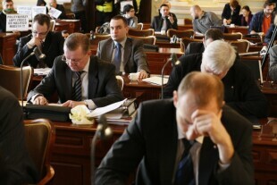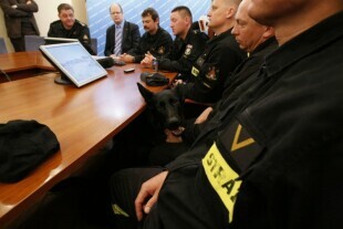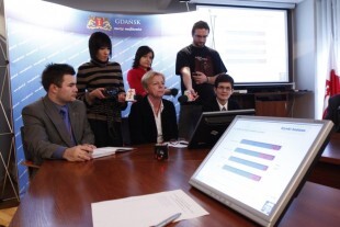 Gdańsk, Urząd Miejski. Konferencja prasowa, podczas której zaprezentowany został raport opracowany przez pracownię PBS DGA pt. "Ocena jakości pracy oraz obsługi klientów UM w Gdańsku". Nz. od lewej: Tomasz Filipowicz (Wydział Obsługi Mieszkańców), Sekretarz Miasta Danuta Janczarek, Dyrektor Wydziału Obsługi Mieszkańców Izabela Dulkiewicz
