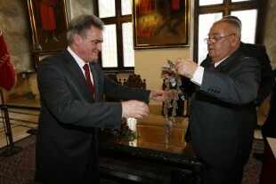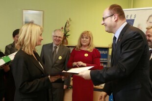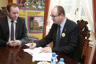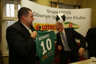 Podpisanie sponsorskiej pomiędzy Grupą LOTOS, Lechią Gdański i Sportive Polska. Gdańsk, Villa Uphagena. Nz. od lewej: Prezes Lechii Gdańsk Maciej Turnowiecki, Prezes LOTOS Paweł Olechnowicz, Prezes Sportive Polska Andrzej Placzyński