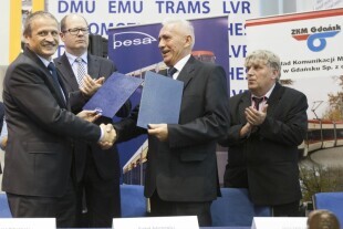 Gdańsk AmberExpo, targi kolejowe TRAKO. Podpisanie umowy pomiędzy ZKM Gdańsk i PESA Bydgoszcz SA na dostawę pięciu nowych, dwukierunkowych tramwajów PESA Jazz 128 NG, które będą obsługiwały m.in. planowaną linię tramwajową na Piecki-Migowo