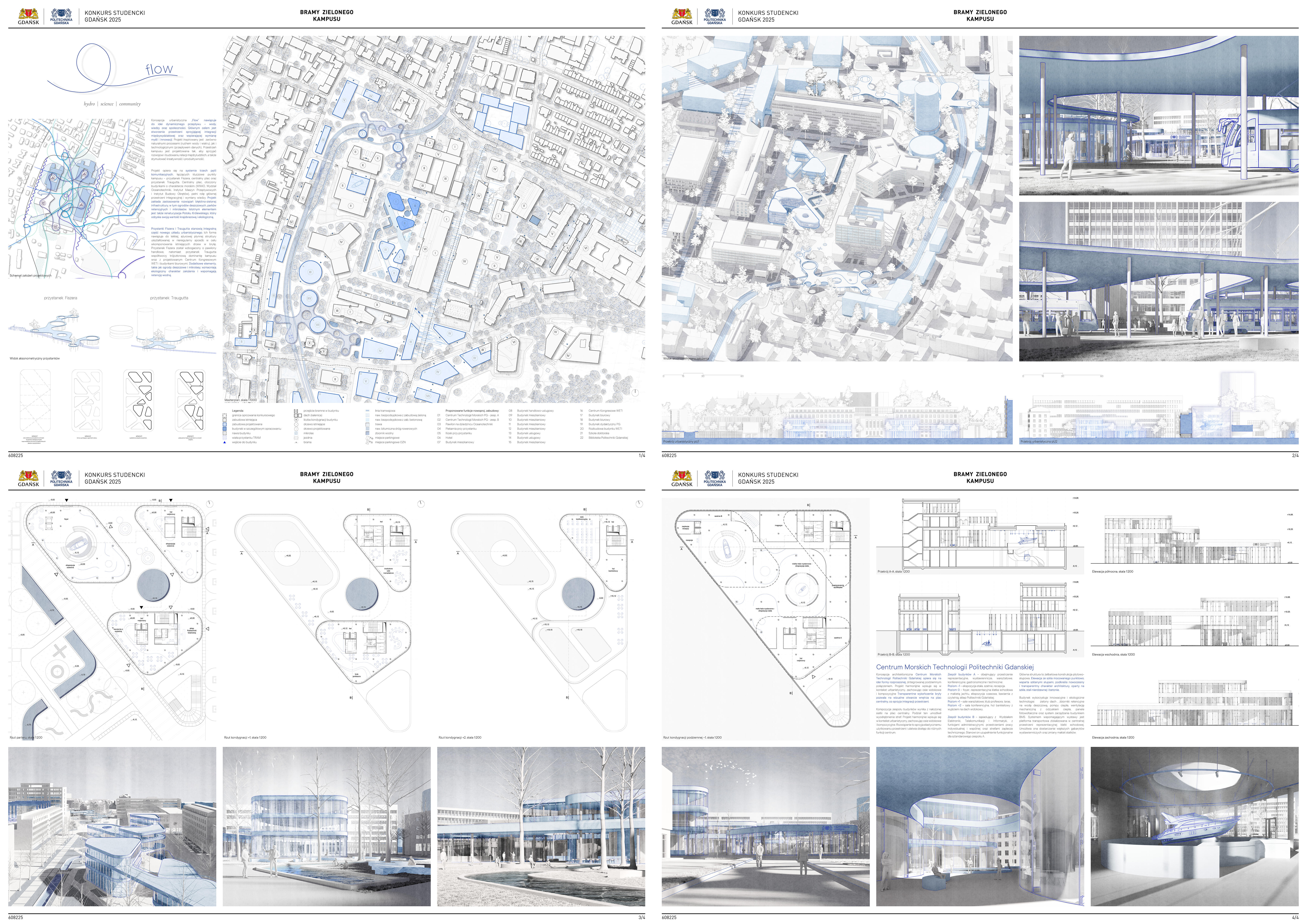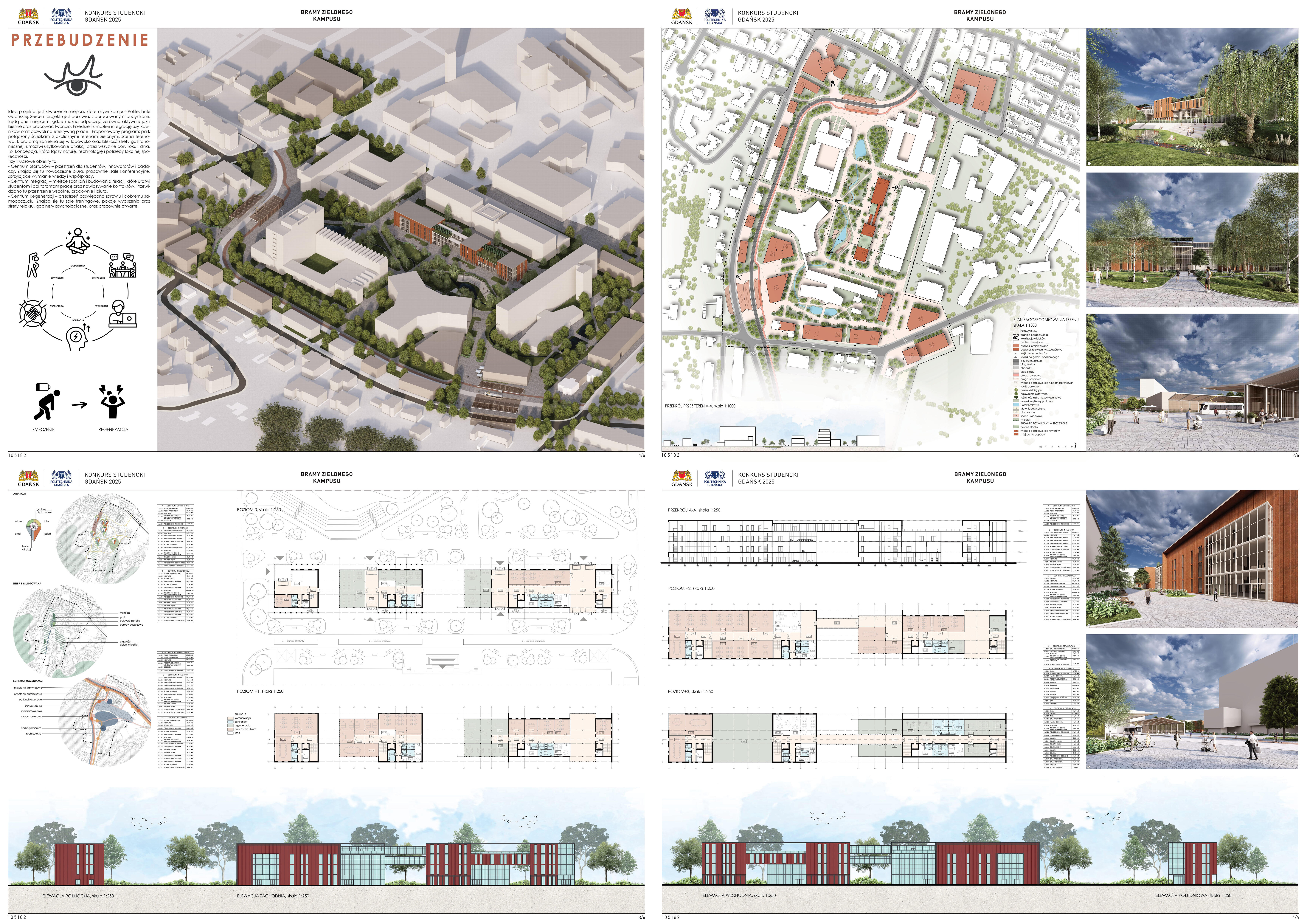 Praca uzyskała równorzędną I nagrodę z uwagi na niezwykle uporządkowany, dojrzale zaprojektowany a zarazem kompletny charakter proponowanej struktury urbanistycznej. Podkreślić także należy dążenie Autorów do dopełnienia przestrzeni w możliwie dużym stopniu nową zabudową, co jednak nie burzy harmonii rozwiązania oraz nie wpływa negatywnie na odbiór całości założenia. Autorzy zaproponowali czytelnie podkreślone dwa nowe wejścia na teren kampusu PG, a zarazem dokonali reinterpretacji centralnej części jego zachodniej części – placu przed gmachami wydziału ETI. Na podkreślenie zasługuje także wykorzystanie elementów zarówno zielenią jak i wody w kształtowaniu przestrzeni publicznych obszaru, przy czym główne place i rejony przystanków tramwajowych zyskały nieco więcej otwartej przestrzeni, klarownie jednak ujętej w ramy zabudowy i zieleni. W konsekwencji odczytać można intencje autorów – wykreowanie struktury o prawdziwie miejskiej, zróżnicowanej strukturze, przesłaniającej nieco nadmiernie monumentalny charakter niektórych budynków kampusu PG.