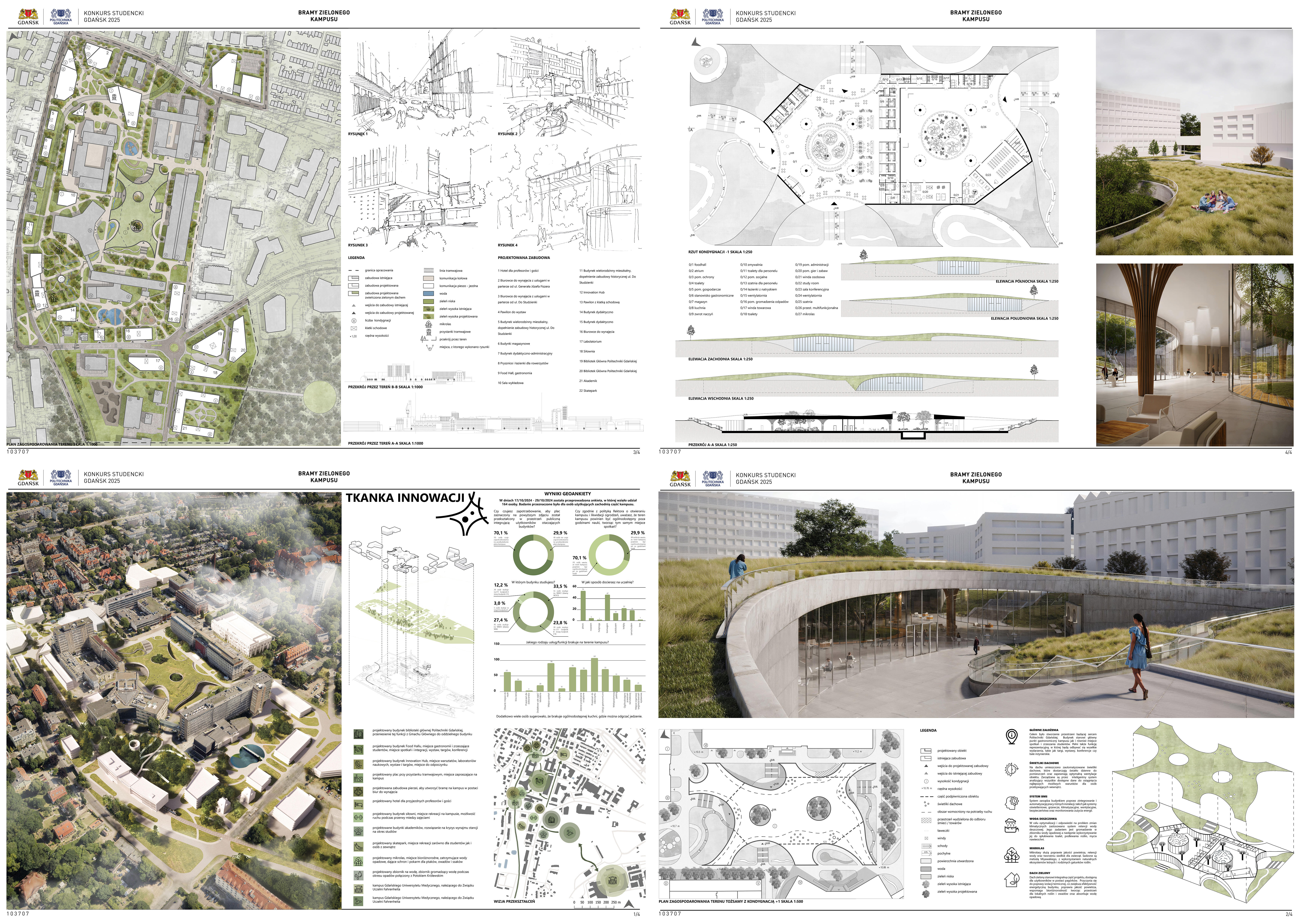 Pierwszą równorzędną nagrodę przyznano pracy nr 4 zatytułowanej „Tkanka Innowacji” za dobrze przemyślany, oryginalny projekt poprawy jakości przestrzeni publicznej kampusu Politechniki Gdańskiej w sposób wzbogacający funkcjonowanie dużego obszaru dzielnicy Wrzeszcz. Obie bramy do kampusu zostały rozwiązane jako czytelnie skomponowane place integrujące przystanki planowanego tramwaju oraz nowe powiązania drogowe i piesze między uczelnią a miastem