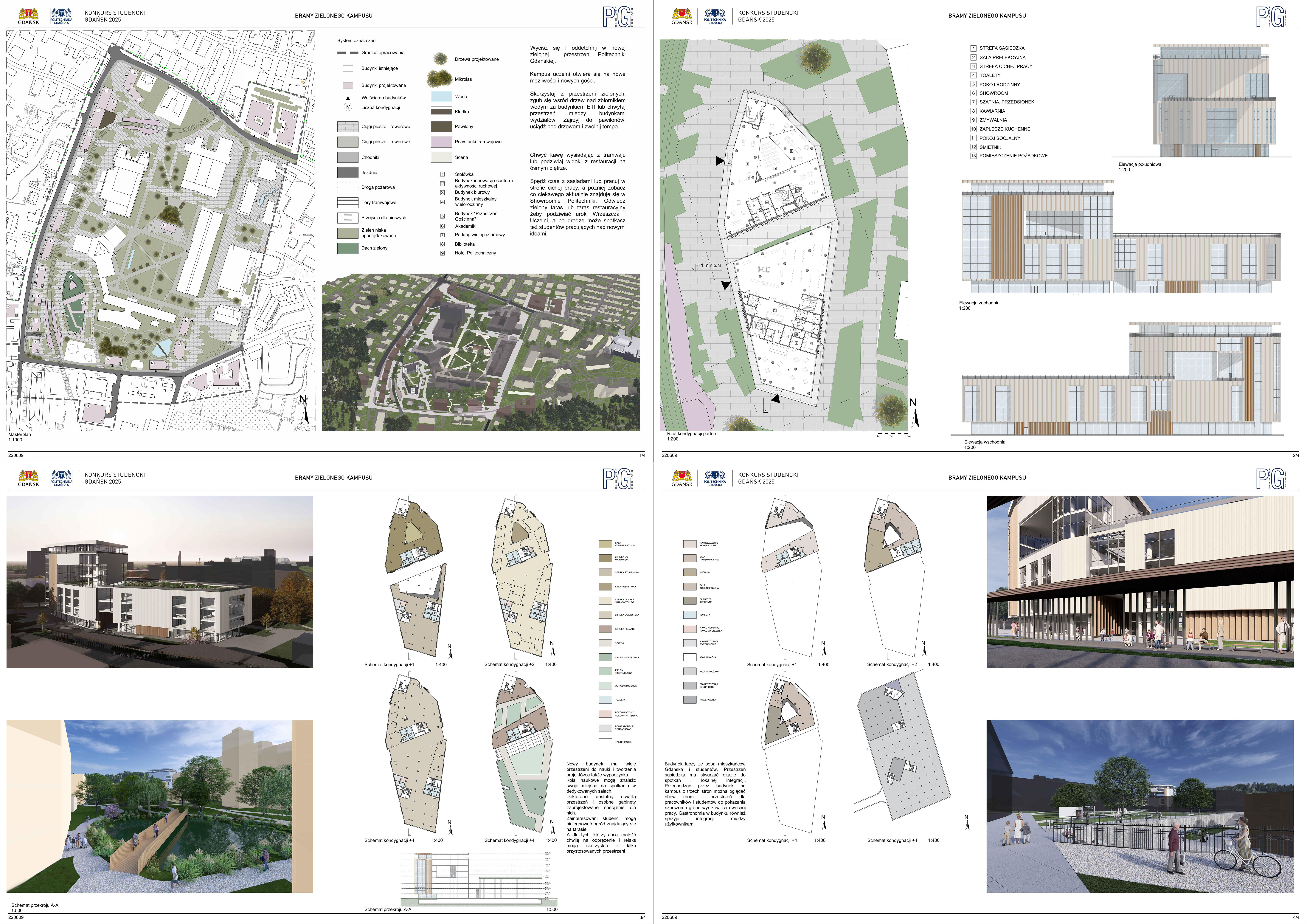 W dniu 6.03.2025 ogłoszone zostały wyniki konkursu "BRAMY ZIELONEGO KAMPUSU" dla studentów I roku studiów II stopnia (semestr I) I na Wydziale Architektury Politechniki Gdańskiej. Z relacją z wydarzenia można zapoznać się > tutaj. Był to kolejny konkurs przeprowadzony wspólnie przez Miasto Gdańsk i Wydział Architektury Politechniki Gdańskiej (więcej o konkursie...).