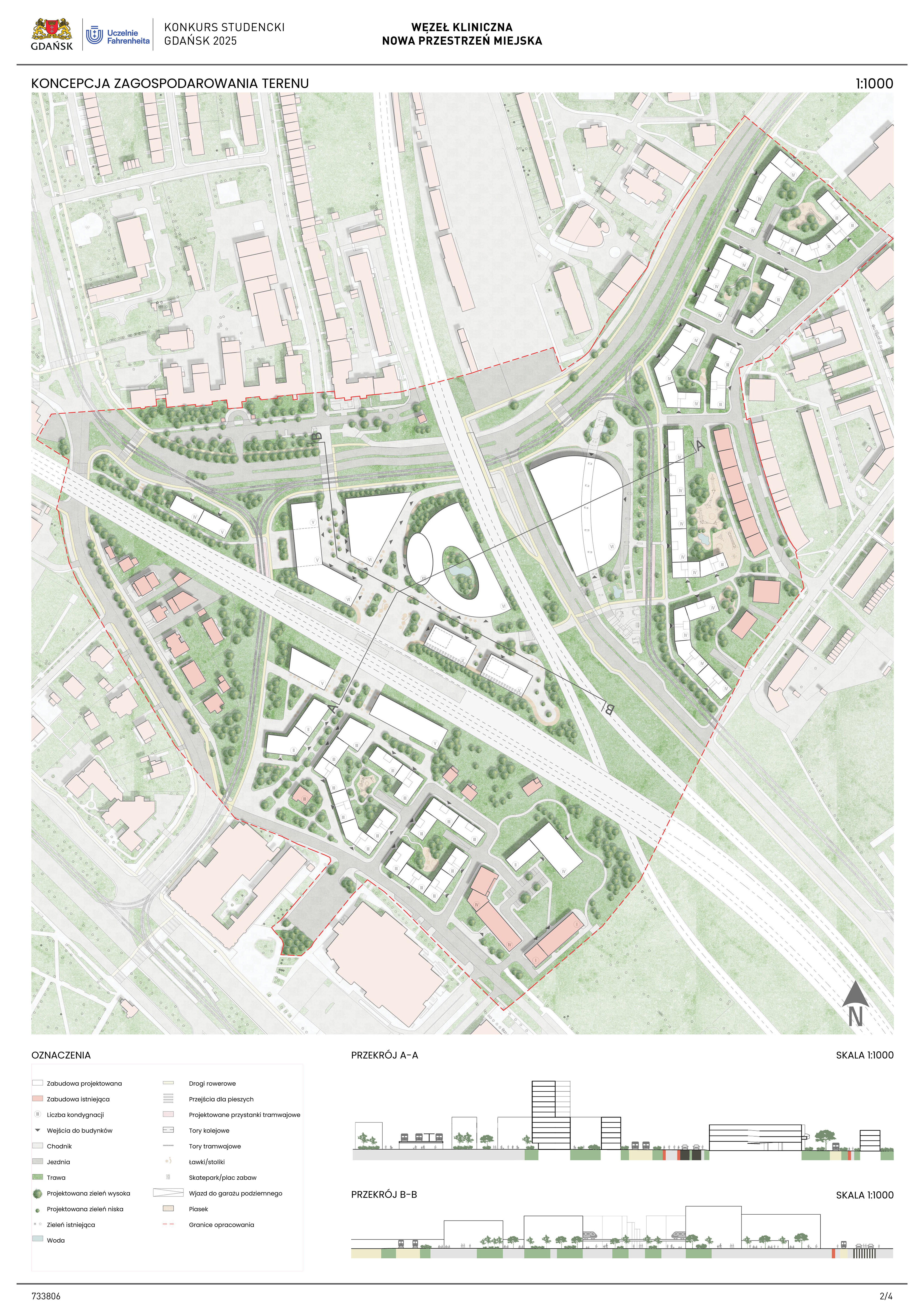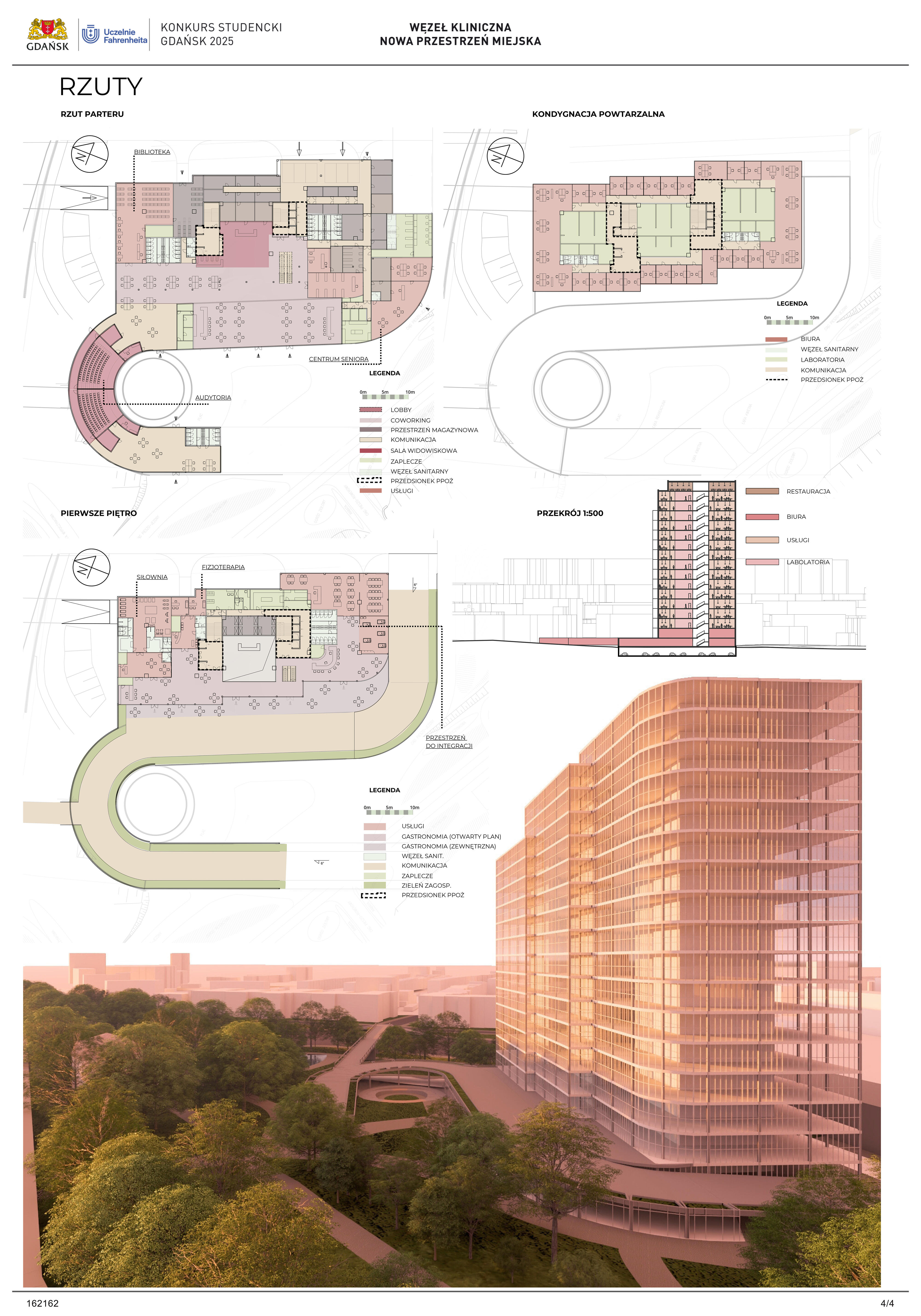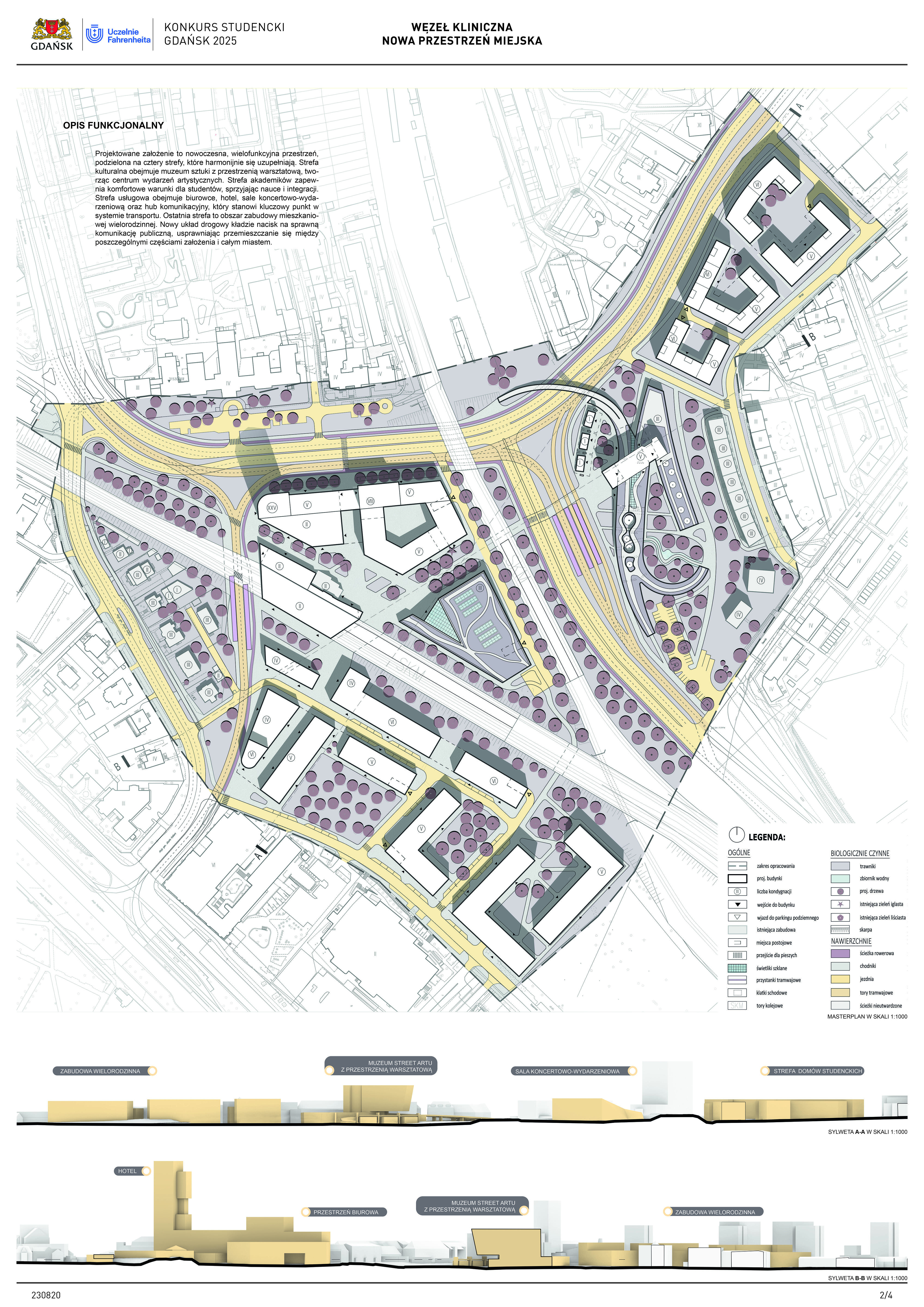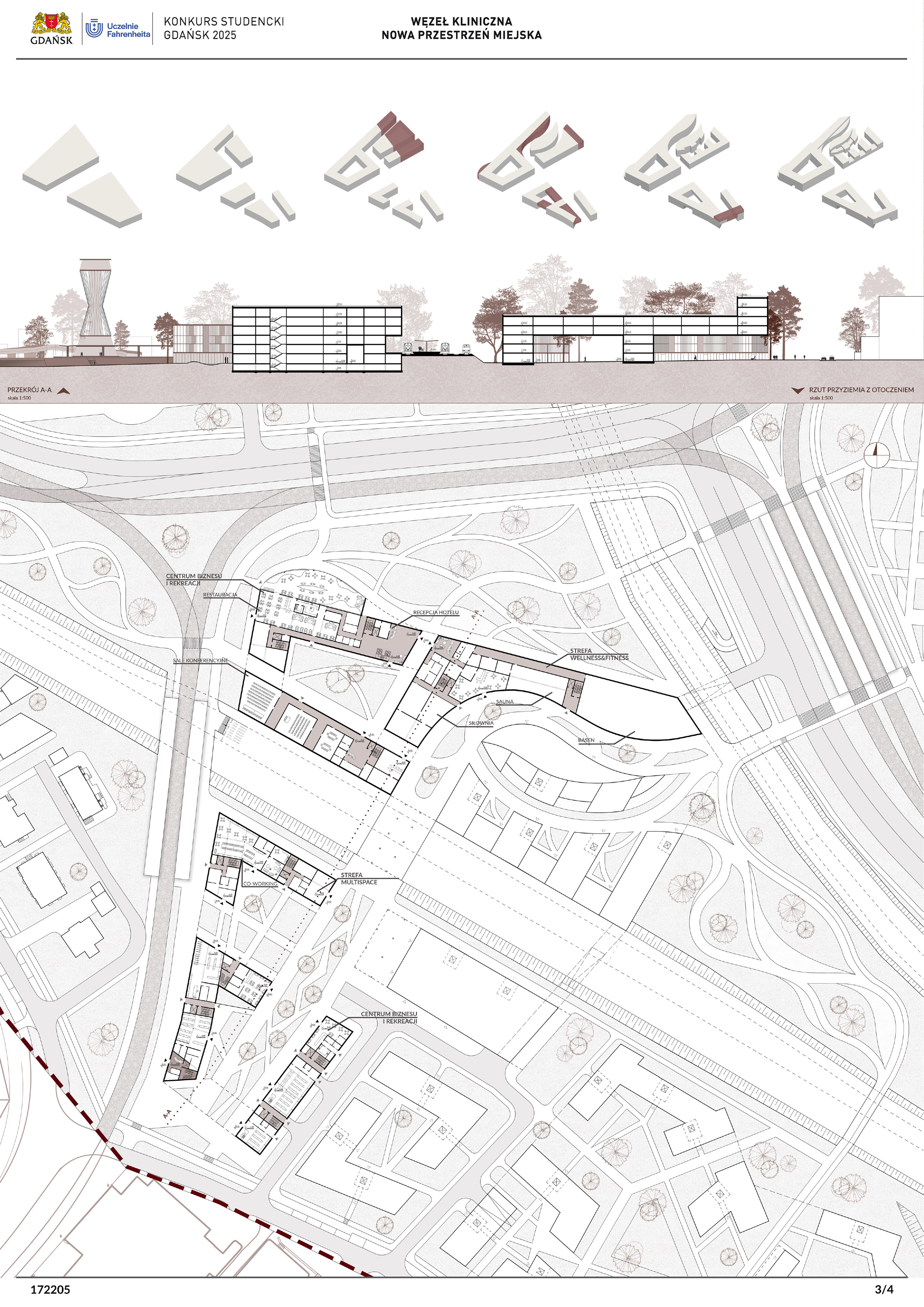 Nagrodzona praca jest spójną, konsekwentnie przeprowadzoną i czytelnie przedstawioną koncepcją realizacji nowej zabudowy w miejscu węzła komunikacji – Kliniczna. Projekt jest bardzo trafną odpowiedzią na postawione w konkursie (niezwykle trudne) zadanie polegające na połączeniu ze sobą struktur miejskich o zróżnicowanej historii, funkcji i skali. Przedstawione w konkursie rozwiązanie tworzy zwartą, miejską, wielofunkcyjną zabudowę. Projekt wyróżnia racjonalne gospodarowanie przestrzenią miasta, tworzenie atrakcyjnych przestrzennie ciągów zabudowy wzdłuż ulic i miejskich placów. Koncepcja umożliwia etapowe połączenie miejskiej struktury Wrzeszcza z terenami stoczniowymi. Zakres przekształceń funkcjonalnych i strukturalnych opracowania został właściwie poszerzony o zabudowę w kierunku Alei Zwycięstwa.