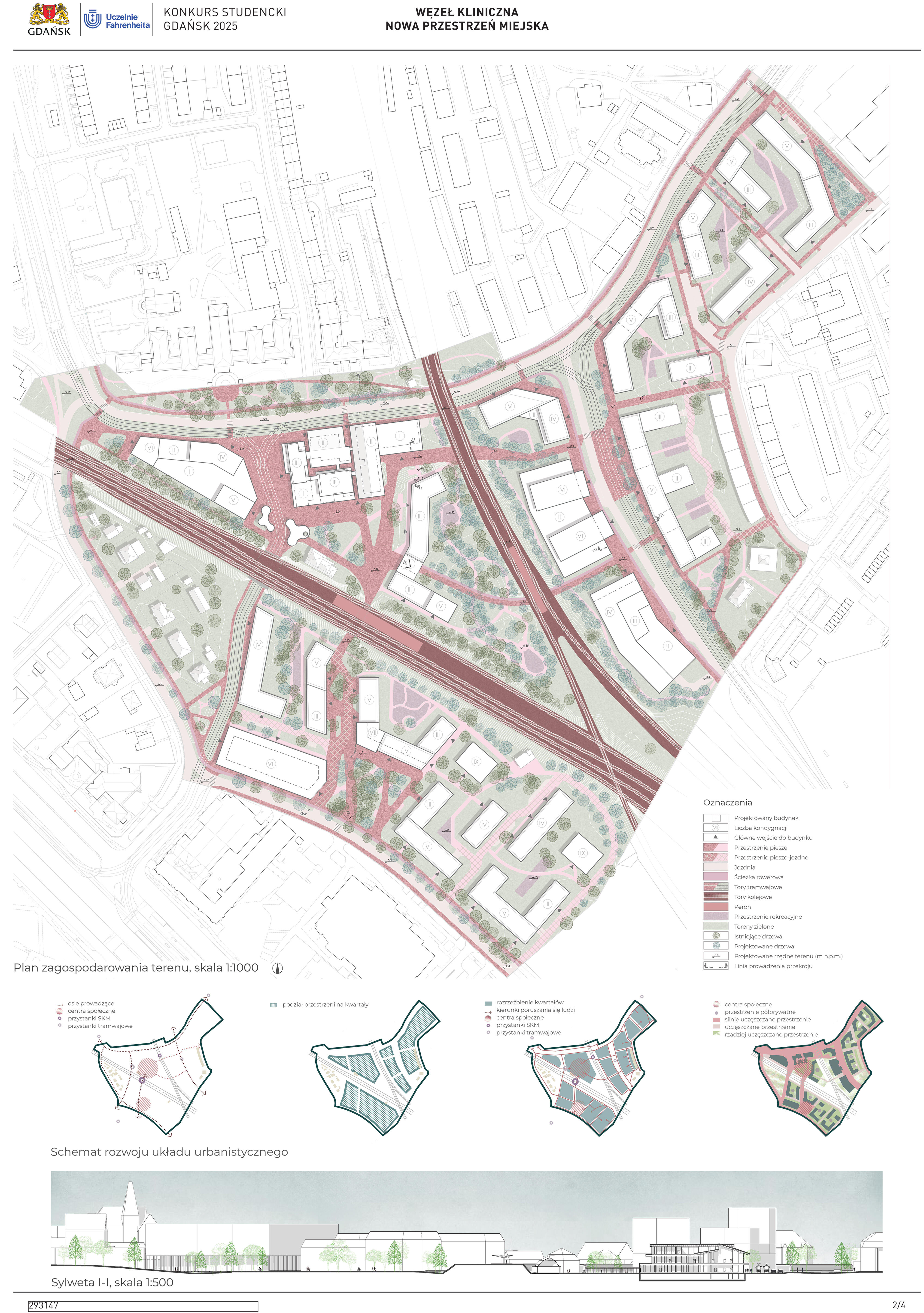Pozytywnie oceniono również próbę interesującej reorganizacji układu drogowego i szynowego oraz wyznaczenie kluczowych kierunków ciągów pieszych, promieniście rozchodzących się z centrum układu.