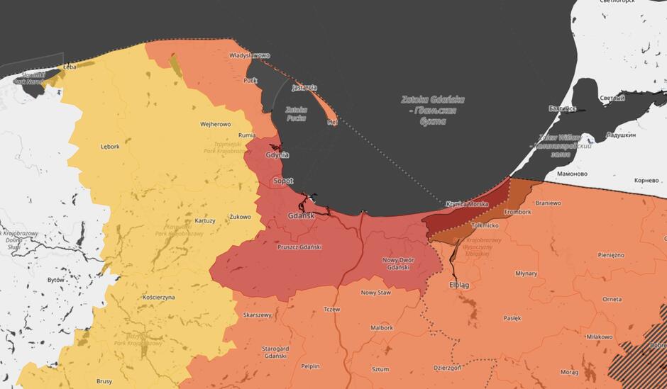 Biuro Prognoz Hydrologicznych w Gdyni ostrzega przed gwałtownymi wzrostami stanów wód (stopień 1, prawdopodobieństwo 70%). Dotyczy to m.in. rzek: Słupia, Łupawa, Łeba, Reda, Martwa Wisła oraz zlewni Zalewu Wiślanego i Nogatu.