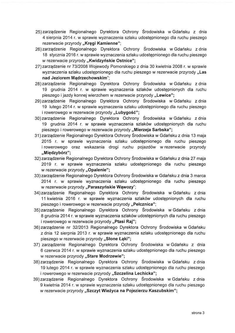 "Regionalny Dyrektor Ochrony Środowiska w Gdańsku informuje, że biorąc pod uwagę potrzeby ochrony wartości przyrodniczych rezerwatów przyrody zagrożonych nadmierną presją ze strony osób odwiedzających je w okresie pandemii, a także mając na względzie zasady bezpieczeństwa epidemiologicznego, uznano za konieczne zamknięcie wyznaczonych przez Regionalnego Dyrektora Ochrony Środowiska w Gdańsku szlaków udostępnionych dla ruchu pieszego, rowerowego i j jazdy konnej wierzchem w rezerwatach przyrody województwa pomorskiego. Szlaki te będą zamknięte na czas trwania epidemii.